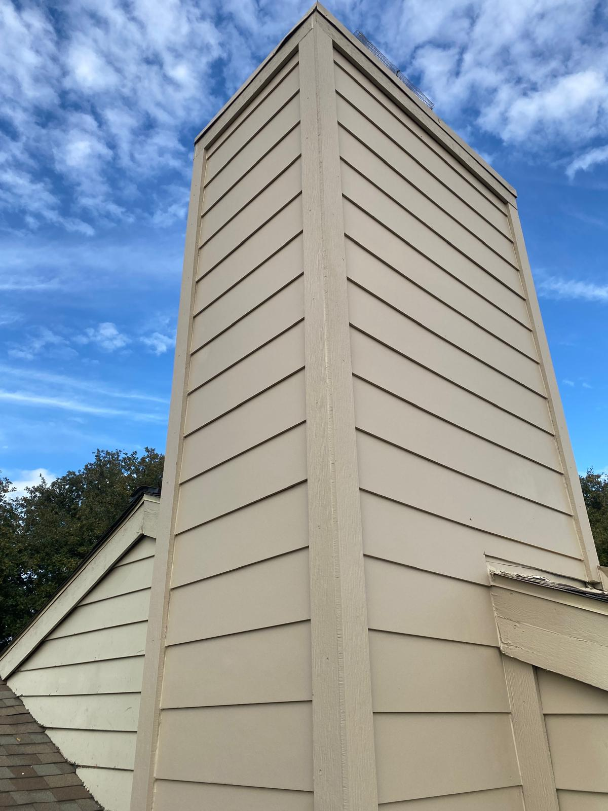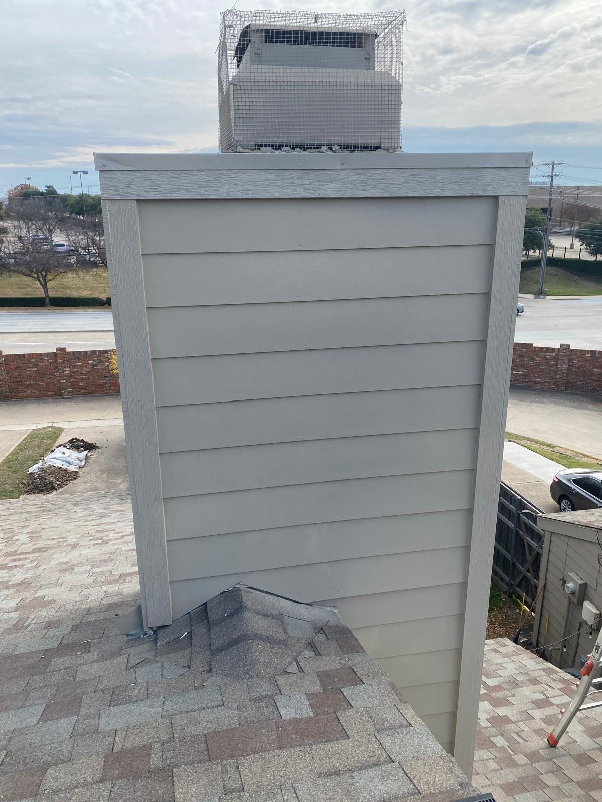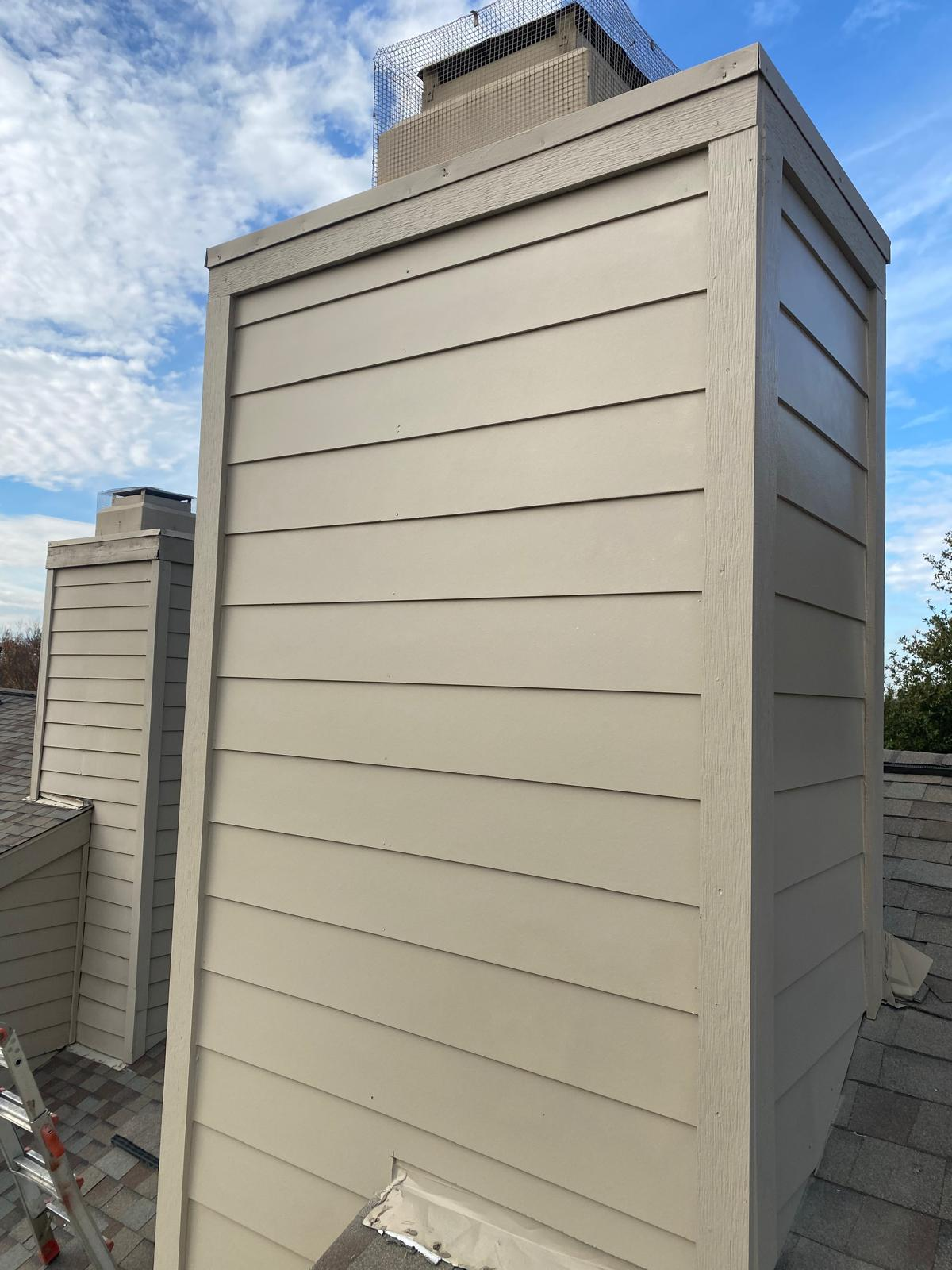 For this project, we completely restored the chimney by addressing two of the most important elements that protect a home: siding and waterproofing. The old masonite siding had deteriorated over time, which not only weakened the appearance of the chimney but also left it vulnerable to water intrusion and long-term structural damage. We removed the failing material and replaced it with durable Hardy siding, which is designed to withstand weather, resist rot, and maintain its clean look for years to come. Before installing the new siding, we ensured the chimney was properly waterproofed. This step is critical because the chimney is one of the most exposed areas of a roof system, and any weakness in flashing or moisture protection can lead to leaks inside the home. By carefully wrapping and sealing the structure with modern weatherproofing materials, we created a tight barrier that prevents water from penetrating behind the siding or into the roofing system. The finished result is not only stronger and longer-lasting but also visually appealing. The chimney now blends seamlessly with the roofline and exterior while giving the homeowner peace of mind that this vulnerable part of the home has been rebuilt with premium products and expert craftsmanship. Choosing Hardy siding and proper waterproofing ensures protection against the elements while maintaining a clean, updated look that adds value to the property.