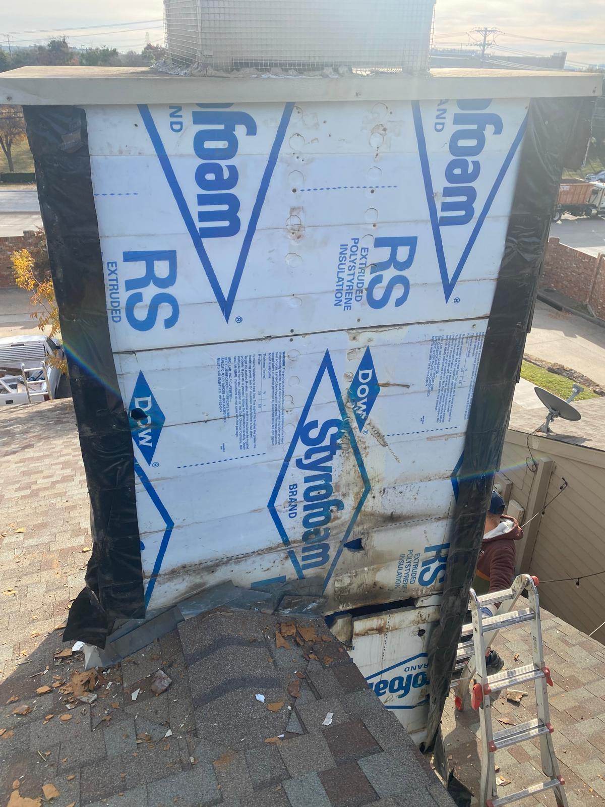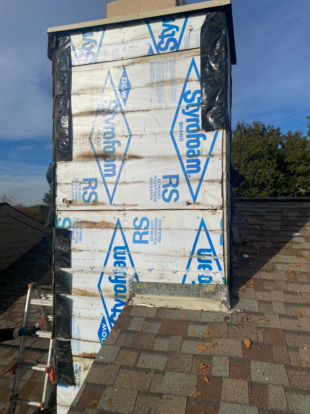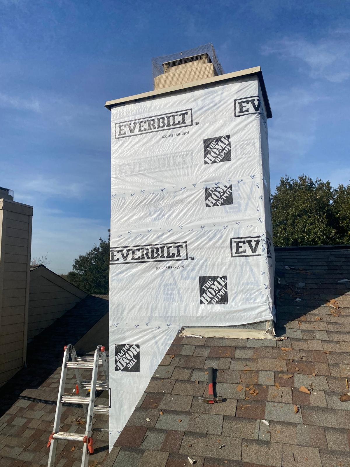 For this project, we completely restored the chimney by addressing two of the most important elements that protect a home: siding and waterproofing. The old masonite siding had deteriorated over time, which not only weakened the appearance of the chimney but also left it vulnerable to water intrusion and long-term structural damage. We removed the failing material and replaced it with durable Hardy siding, which is designed to withstand weather, resist rot, and maintain its clean look for years to come. Before installing the new siding, we ensured the chimney was properly waterproofed. This step is critical because the chimney is one of the most exposed areas of a roof system, and any weakness in flashing or moisture protection can lead to leaks inside the home. By carefully wrapping and sealing the structure with modern weatherproofing materials, we created a tight barrier that prevents water from penetrating behind the siding or into the roofing system. The finished result is not only stronger and longer-lasting but also visually appealing. The chimney now blends seamlessly with the roofline and exterior while giving the homeowner peace of mind that this vulnerable part of the home has been rebuilt with premium products and expert craftsmanship. Choosing Hardy siding and proper waterproofing ensures protection against the elements while maintaining a clean, updated look that adds value to the property.